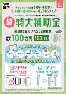 2026年4月27日 / 最終更新日時 : 2026年3月22日 五十嵐 お知らせ 【住宅・内窓版】“超” 特大補助金 最大100万円! コメントを残す コメントをキャンセルメールアドレスが公開されることはありません。 ※ が付いている欄は必須項目ですコメント ※ 名前 ※ メール ※ サイト 次回のコメントで使用するためブラウザーに自分の名前、メールアドレス、サイトを保存する。 上に表示された文字を入力してください。